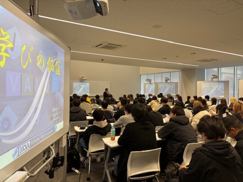 当ゼミナールへの登壇は今回で4回目になりますが、受講された約100名の学生へ「学びの価値」について、自身の経験を振り返りながら力強いメッセージを送りました。